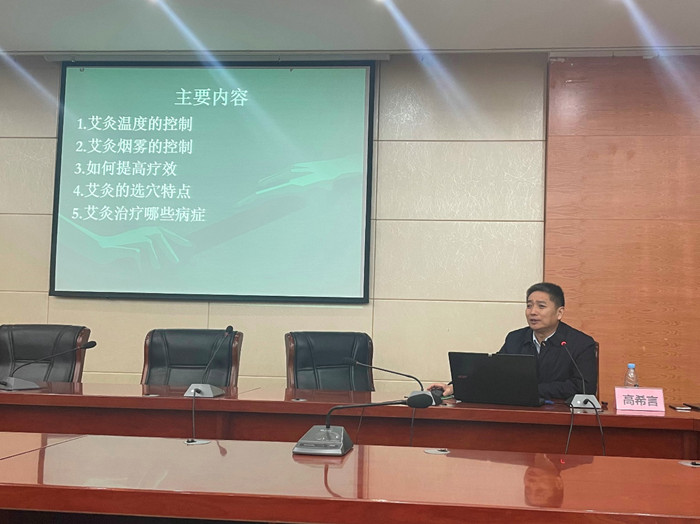 高希言教授以“浅谈古代医家的用灸智慧——透灸理念的提出与临床验证”为主题,用考证文献的严谨态度向公司师生阐释了从古至今各家医藉中有关灸法的经典记述,又结合自己丰富的临床经验以及成熟的科研设计方案生动形象地展示了艾灸器具,援引针灸大家、布衣百姓运用针灸治疗大病、重病的经典医案。师生们兴致盎然、踊跃提问,现场气氛十分活跃。