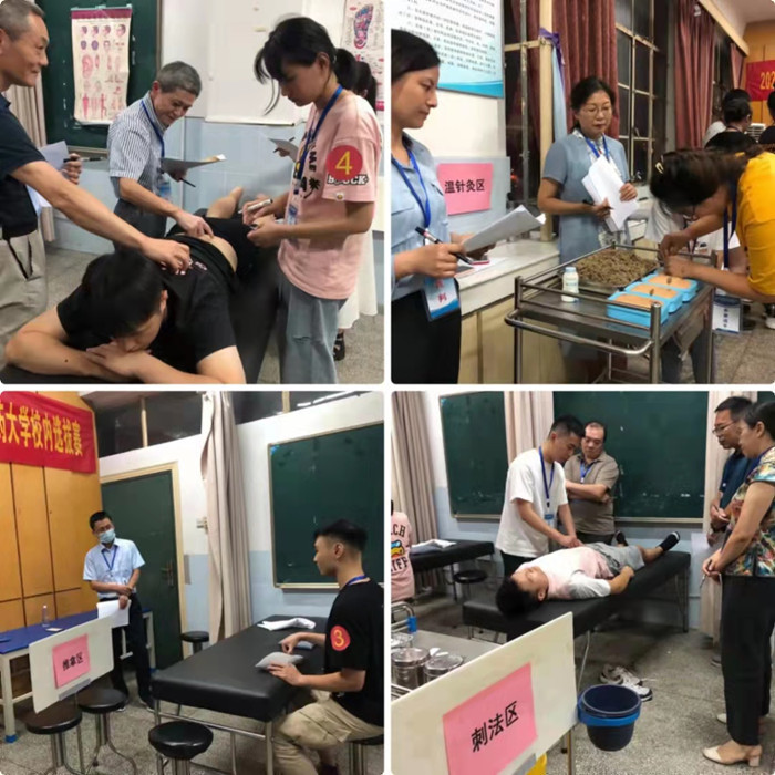 暑期培训的12名同学参加本次选拔赛,按照抽签顺序,依次进行腧穴定位、刺灸法操作、温针灸和推拿手法等环节的比赛,最终选出吴杰等4名同学代表公司参加本次全国大赛。