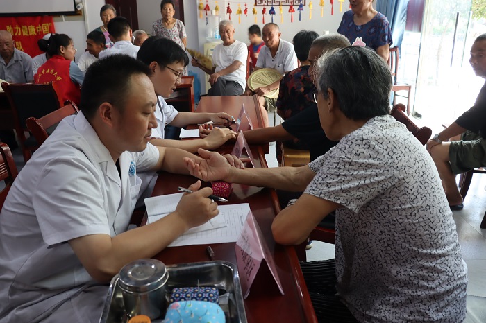 对于行动不便的群众,团队师生在磨店社区工作人员和新家园公益志愿者带领下,走进群众家中,开展推拿、耳穴等诊疗服务,并赠送了感冒灵、黄连素等药品和防疫养生香囊。