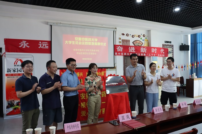 在磨店社区居民活动中心,公司党委书记蒋宏杰、经理唐巍和磨店社区管委会副主任蓝岚等共同为英国365集团官网老员工社会实践基地揭牌,双方共建老员工社会实践基地,将常态化、规范化、经常性开展社会实践及志愿服务,为社区群众提供优质中医药健康服务。