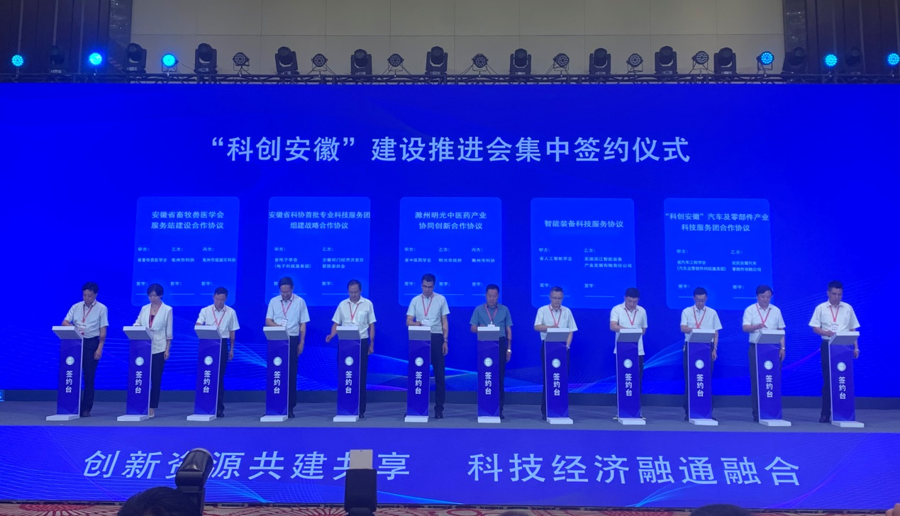 在当日下午举办的长三角“科创中国”服务科技经济融合发展论坛上,举行了“科创安徽”建设推进会集中签约仪式,公司党委书记蒋宏杰代表安徽省中医药学会与滁州市科学技术协会、明光市政府签署中医药协同创新合作协议。