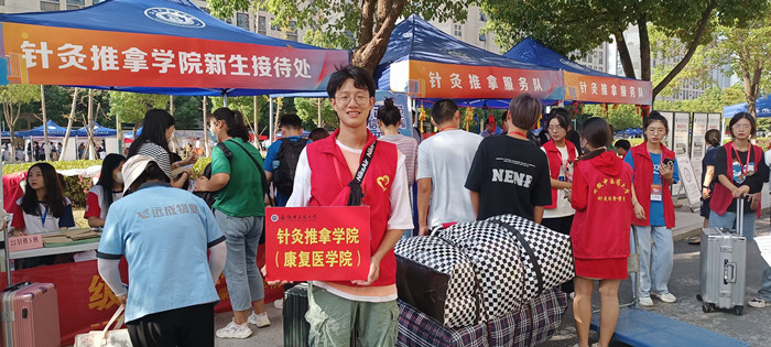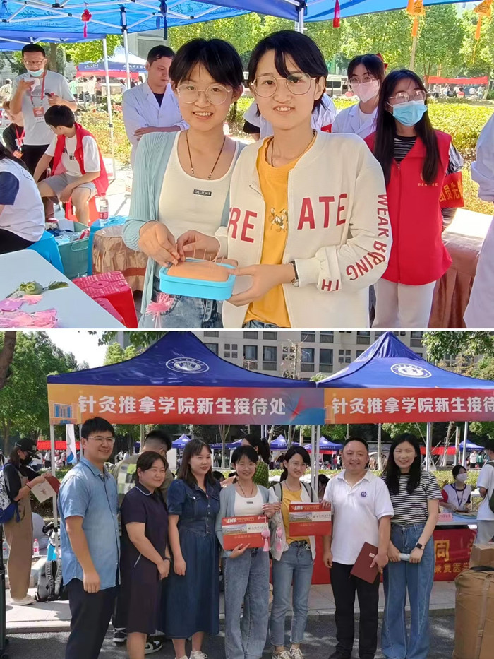 英国365集团官网立足专业,充分发挥公司特色与优势,成立针灸推拿服务队,向新生们生动的展示中医药文化与针灸推拿手法,使新生第一时间接受中医药文化熏陶与滋养,该公司党委书记蒋宏杰亲切的向新生讲解“十二经络养生时辰表”及“子午流注”相关专业知识,新生们津津有味又充满好奇。