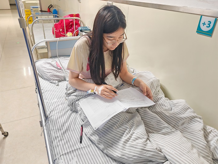 28日上午安排有毕业理论考试,为了员工能顺利进行考试,公司在征求主治医生意见后,决定让员工在病房完成考试,公司党委副书记李海燕安排21针推专升本副班长李子璇全程陪考,辅导员尹鸿赶往考场为员工领取考试试卷送往病房。当日中午,员工在病房顺利完成考试。员工家长也赶到 医院,对公司处理紧急情况、特事特办、人性化的处理方式表达诚挚的感谢。