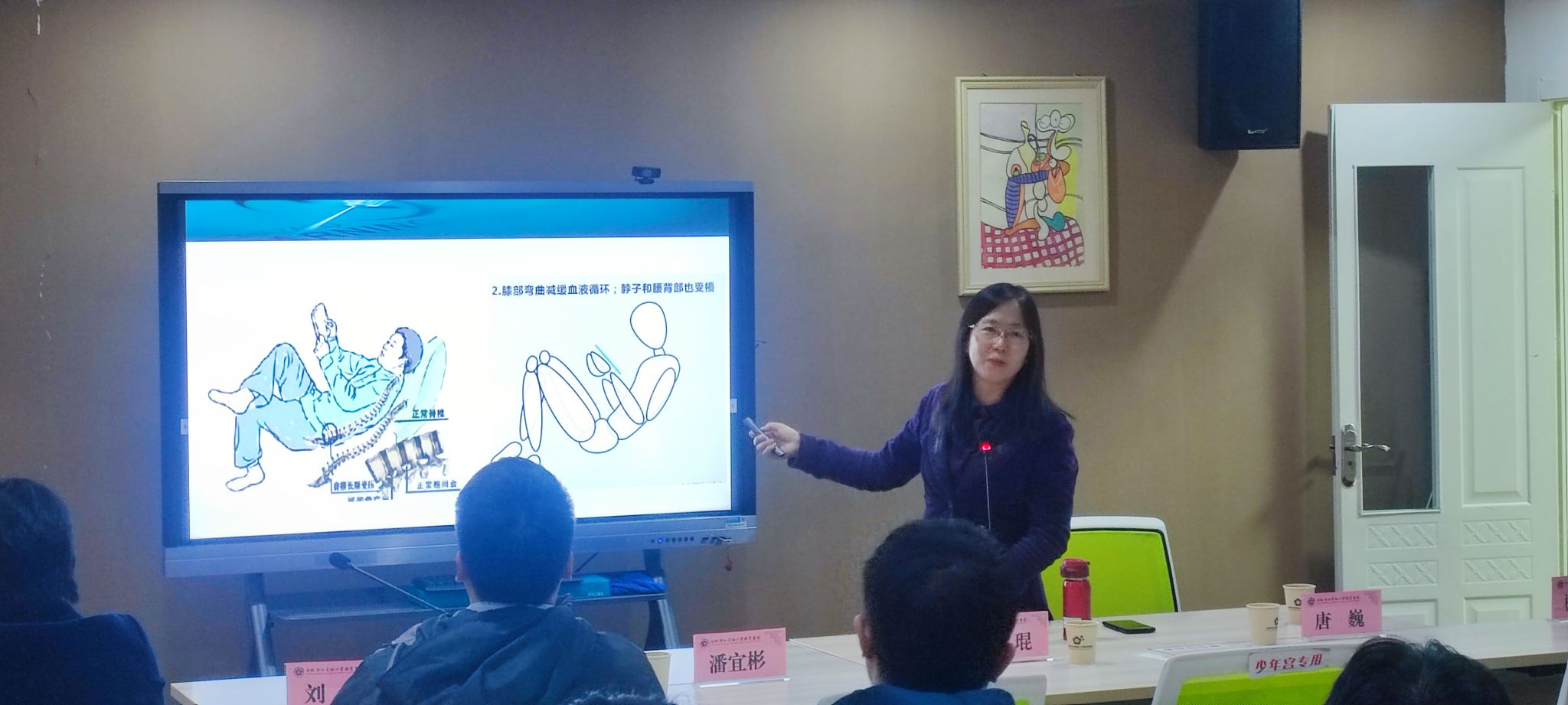 在宣讲环节中,唐巍教授围绕教师职业活动中最常罹患疾病——颈腰椎疾病,首先通过临床案例分享,引发大家对颈腰椎疾病知识的思考;然后通过介绍颈椎病、腰椎间盘突出症等疾病的概念、病因、诊断、中医针灸特色疗法,让红星路小学园丁们对颈腰椎疾病有了更加科学正确的认识、对中医特色康复疗法有了进一步的接受与认可。