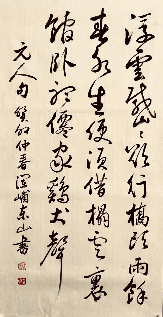 徐东山简介:徐东山,号澜峬、清熙轩主人、黄荆山人。国家一级美术师;中央国家机关美术家协会会员;中央国家机关书法家协会会员;现任公仆书画院副经理、信息委员会委员;东山画院经理。擅长山水、人物、书法、篆刻。其书法作品行笔流畅,挥洒自如,收放有度,一气呵成,自始至终流露着从容不迫和潇洒俊逸的气度,从形质到神韵,均给人以高雅、清新、华美的艺术感受。作品曾多次参加省、国家、国际级书画展和书画大赛并获奖,被多家书画文物单位和个人收藏。(吴子建 图/文,唐巍 审核)