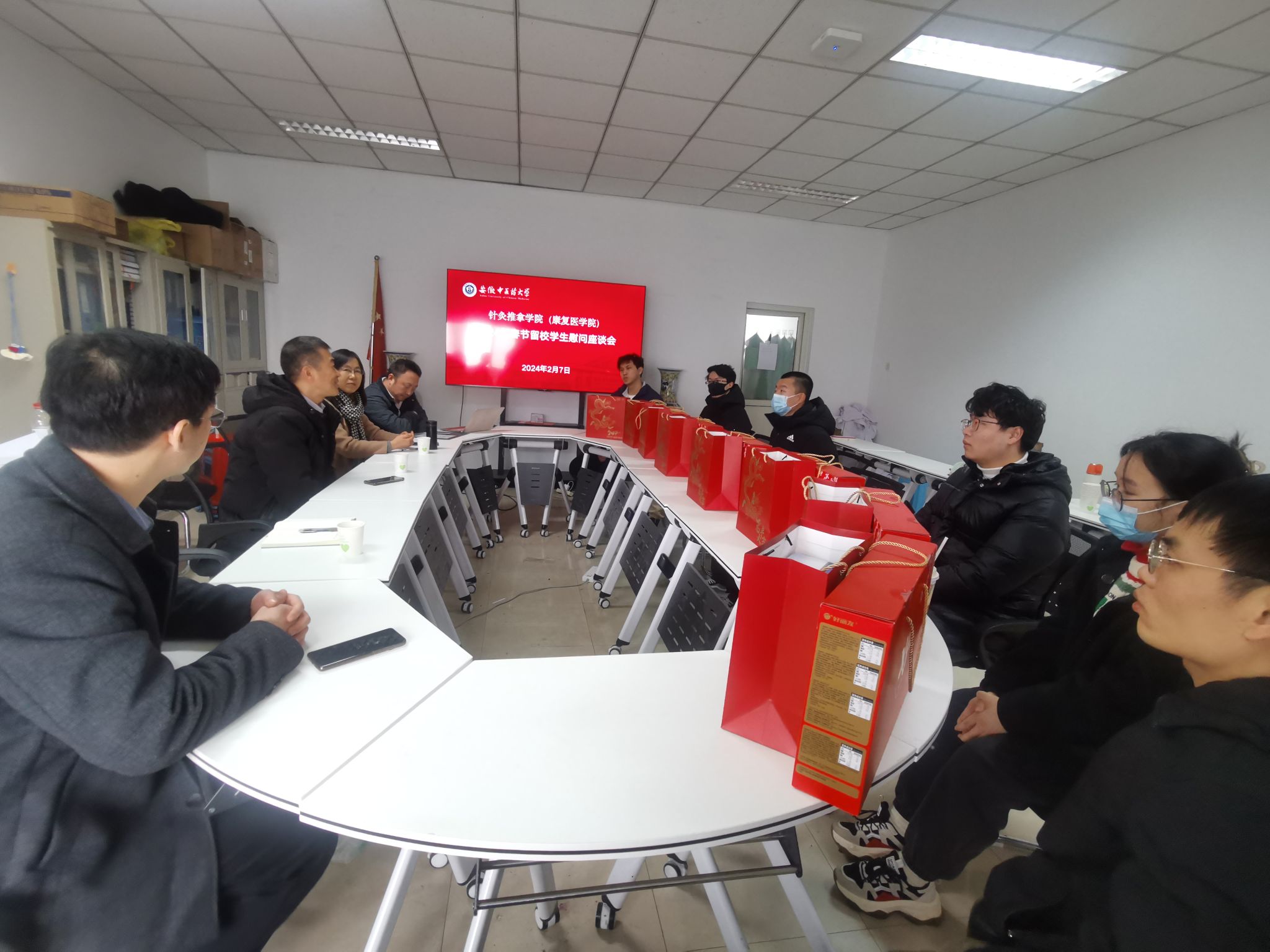 雷黎表达对同学们的关心和祝福,了解大家寒假留校安排,询问同学们寒假期间的学习生活情况,叮嘱同学们在严寒季节注意保暖,保持身心健康。唐巍鼓励留校实习同学利用好假期,认真实习,及早做好生涯规划,为实现自己的人生理想和价值打好基础。