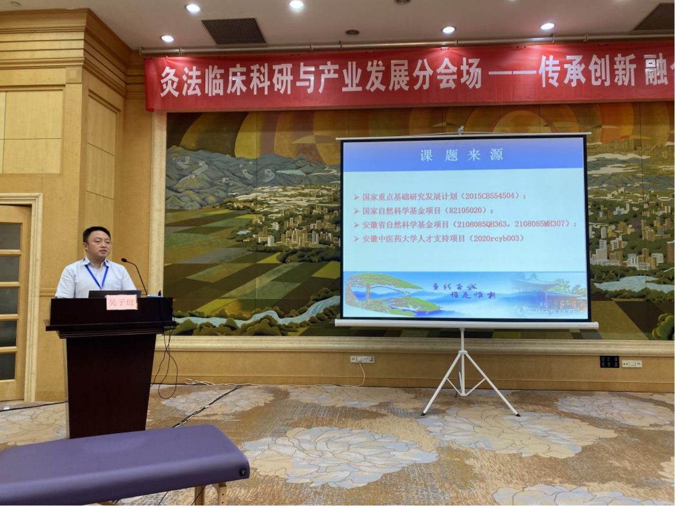吴子建教授在“灸法临床科研与产业发展分会场”做题为“基于代谢组学探讨艾灸干预KOA软骨损伤的效应机制”专题报告。会议同期还举行了实验针灸分会第五届委员会换届会议,崔帅博士、高鹤仁博士新增为中国针灸学会实验针灸分会委员。