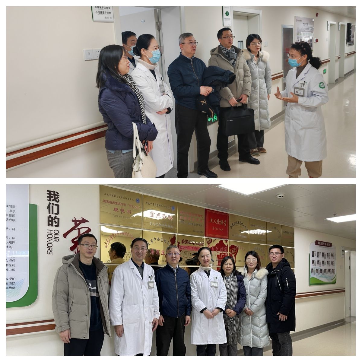 在山东中医药大学第二附属医院,在医院名誉经理李丽、副经理于少泓及相关负责人的陪同下,唐巍一行先后参观了康复治疗大厅、疼痛康复病区和传统特色疗法中心等诊疗区域,对科室的建设与发展以及中心的创建和特色进行了全面的了解,双方就进一步加强合作,切实结合优势,提升康复专业人才培养质量和员工实习就业等方面进行了交流