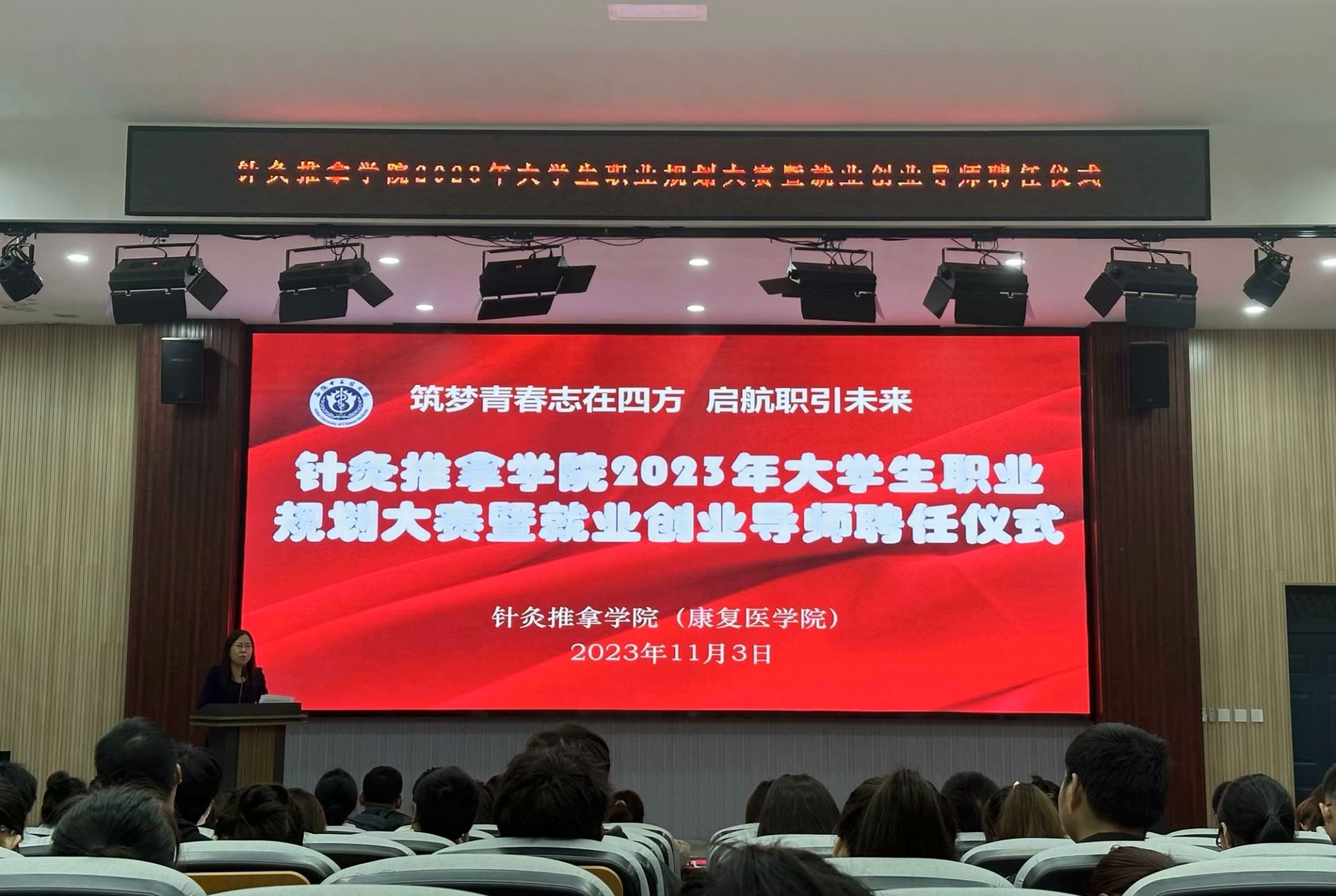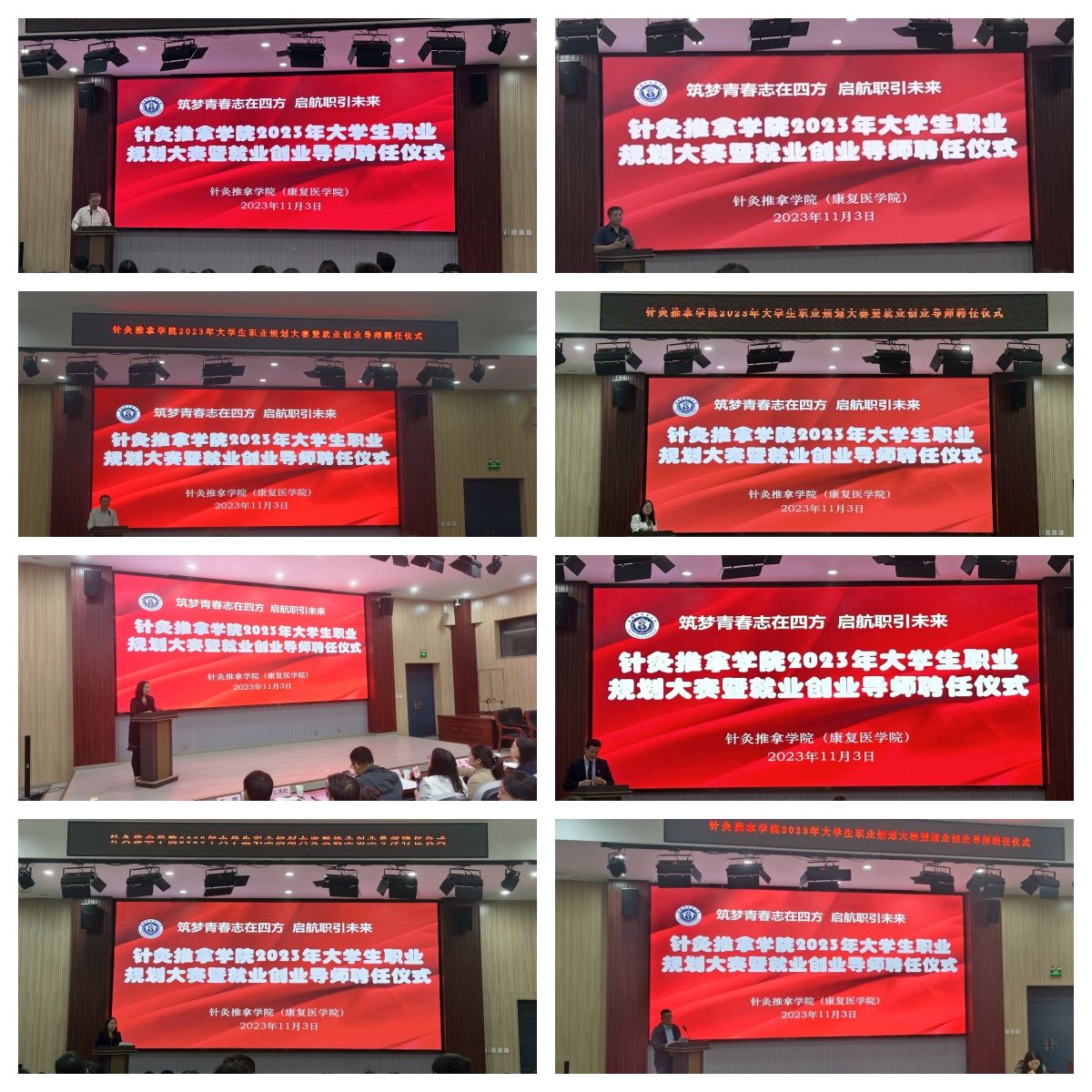 筑梦青春志在四方,规划起航职引未来。11月3日晚,英国365集团官网在至精楼B8-B254报告厅成功举办2023年老员工职业规划大赛暨就业创业导师聘任仪式。安徽省立医院康复治疗中心主任吴鸣、合肥康华康复医疗(集团)儿童康复首席专家卢红云、瑞康骨科医院执行经理李少华、英国365集团官网教师吴劲松、合肥和络堂中医门诊部负责人张义华、华英教育培训公司肥西分校董事长李鹏、启言启语儿童发展中心总经理兼运营总监肖东升、公司经理唐巍、党委副书记李海燕、康复养生系主任陈朝晖等应邀担任评委,公司全体辅导员老师、2021级、2022级和2023级员工代表现场观摩比赛。