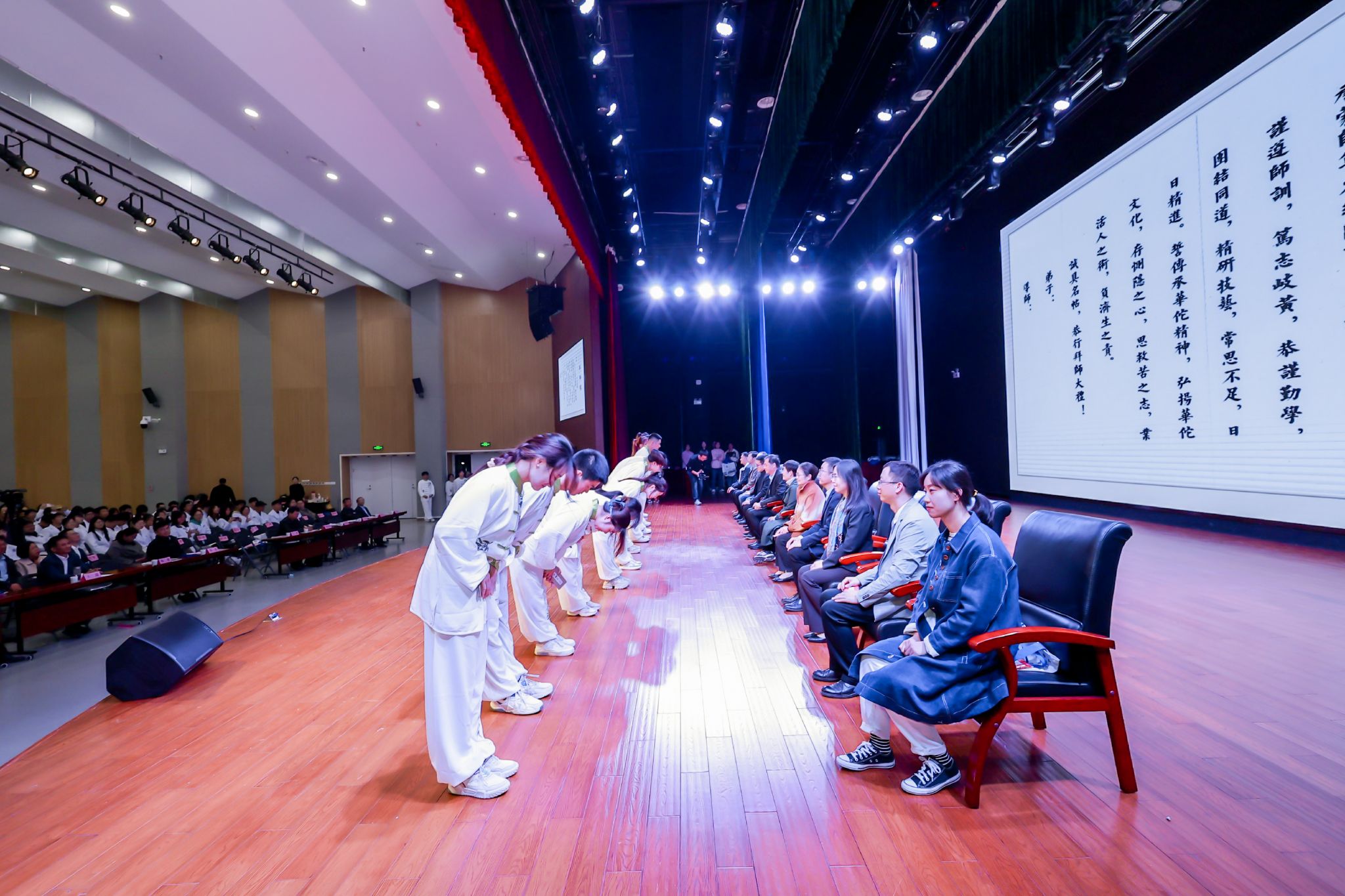 轩岐古道,薪火绵延,杏林业隆,道有其传。伴随着热烈的掌声,拜师仪式正式开始。主持人吴劲松老师和“华佗菁英班”导师代表领诵《师训》,告诫员工每方每药,皆系性命;一针一,关乎生死。故医者,德于技先,技承德满;德要近佛,才欲近仙。心不可不,业不可不精。
